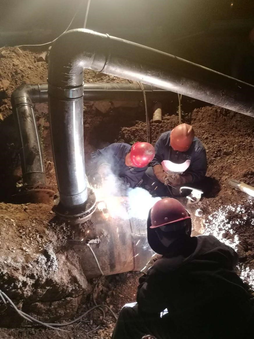 3月21日晚10時(shí),荊門市給排水安裝工程公司對(duì)荊石線供水管道2處臨時(shí)管道進(jìn)行拆除,并順利進(jìn)行DN600主管道碰頭施工。經(jīng)過施工人員的連夜搶修,次日凌晨5點(diǎn)4處DN600主管碰頭全部施工完畢,比原計(jì)劃提前3個(gè)小時(shí)完成任務(wù)。為不影響荊石線沿線所有居民及工業(yè)用水,施工安排在夜間進(jìn)行。