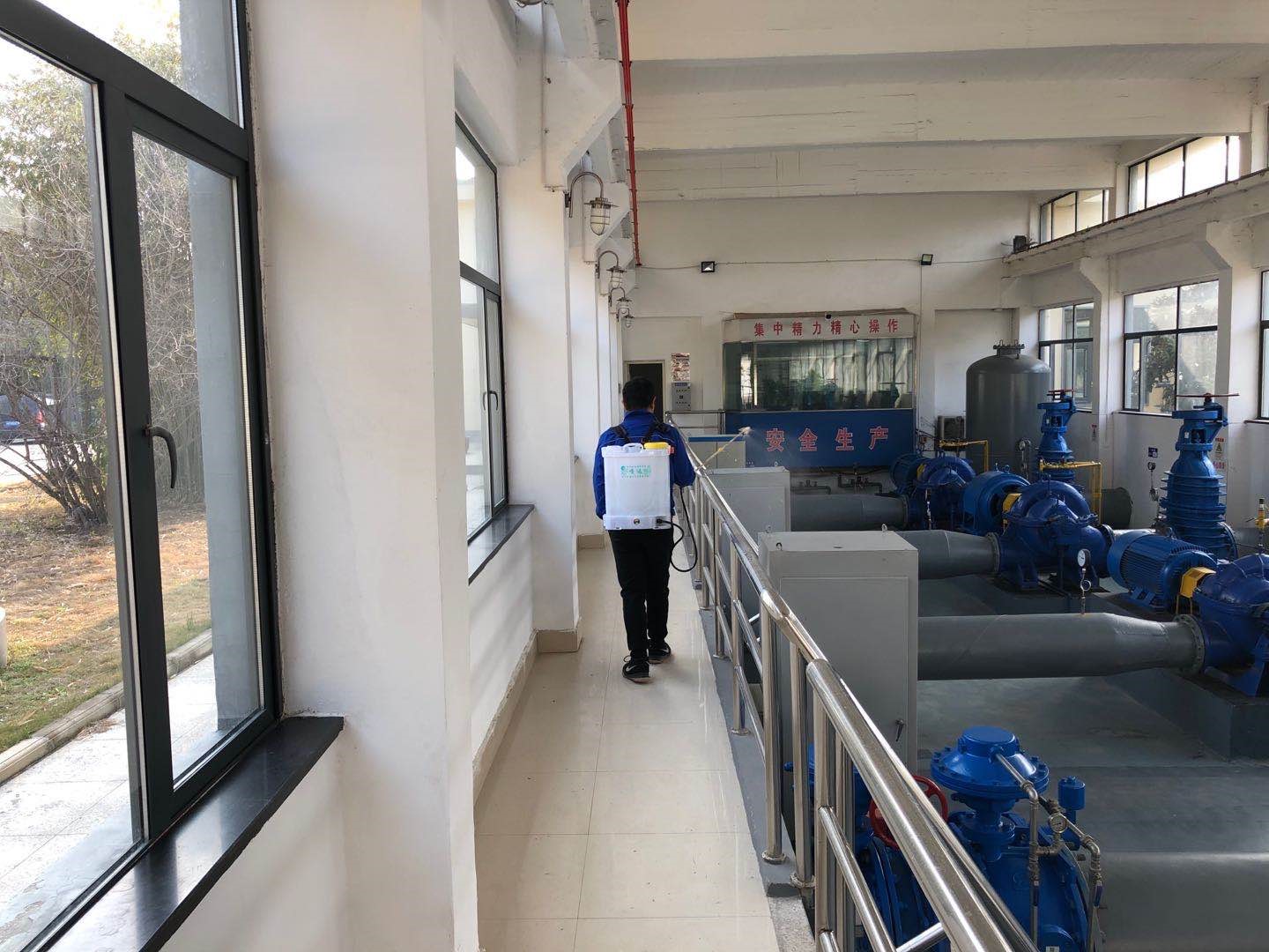 二是加強辦公區(qū)域消毒工作。每天安排專人對辦公室、泵房、維修車間、食堂等區(qū)域進行消毒,并通風30分鐘以上。