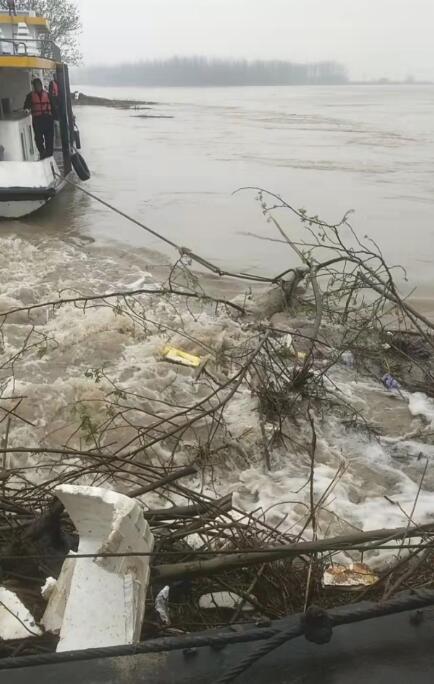 連日來,漢江流域普降大雨,河水猛漲,河道水位迅速上升,漢江上游大量樹枝、枯草夾雜著白色垃圾隨著河水一起流向荊襄供水有限公司關(guān)山取水浮船區(qū)域。