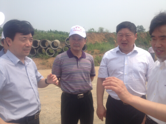 ![]() 市委書(shū)記萬(wàn)勇(右二)、市長(zhǎng)肖菊華(右一)、副市長(zhǎng)鄭中華(左一)等領(lǐng)導(dǎo)觀摩施工現(xiàn)場(chǎng)