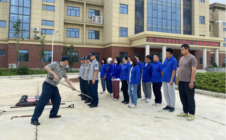 為檢驗干部職工應(yīng)對突發(fā)事件的反應(yīng)能力、協(xié)調(diào)能力和現(xiàn)場處置能力,6月7日下午,市水務(wù)集團(tuán)第四水廠組織全廠職工開展反恐防暴應(yīng)急演練。