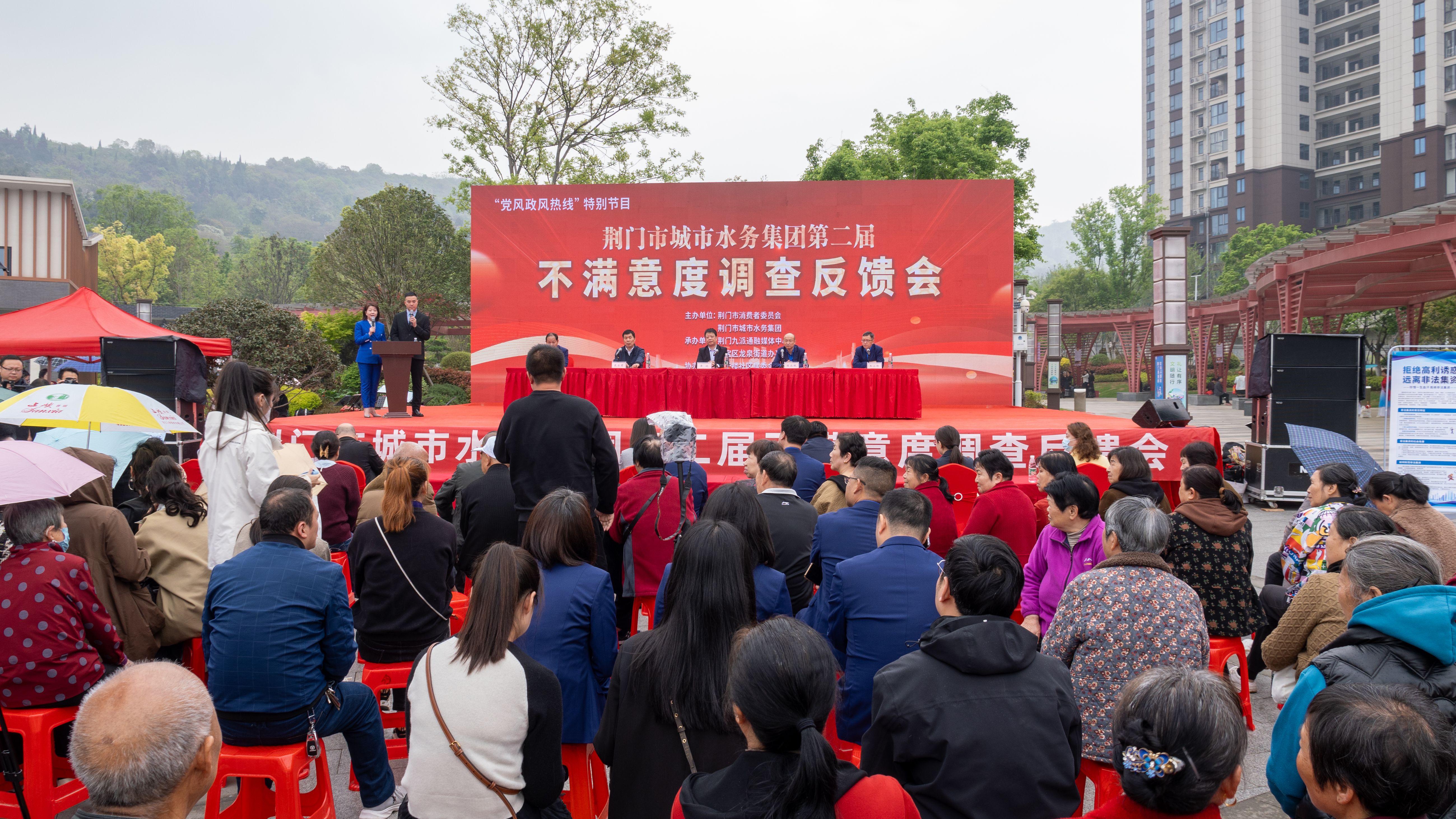 4月11日上午,由荊門市消費者委員會主辦,荊門九派通融媒體中心和市水務集團聯(lián)合承辦的《黨風政風熱線》特別節(jié)目——“荊門市城市水務集團有限公司第二屆不滿意度調查反饋會”走進白云樓社區(qū)居民點,街辦、社區(qū)、媒體代表及居民用戶共200余人參加活動,荊門市消費者協(xié)會秘書長黃波、第三方調查小組代表戴永君出席。