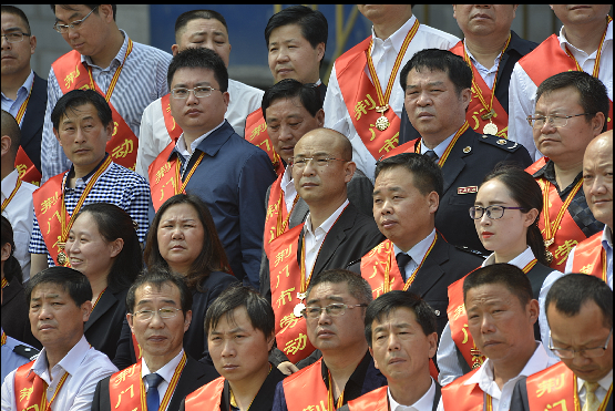 荊門市勞動模范、供水總公司黨委書記、總經(jīng)理陳永根(右二)上臺接受頒獎。