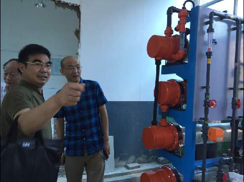 一水廠為城市備用水廠,始建于1969年,以前凈化工藝采取傳統(tǒng)的加氯(氯氣瓶儲(chǔ)存供應(yīng))方式,考慮到一水廠地處省重點(diǎn)中學(xué)龍泉中學(xué)旁,人口密集,存在危化品泄漏安全隱患,公司通過考察,慎重決策,在內(nèi)地(目前僅在沿海地區(qū)發(fā)達(dá)城市應(yīng)用)首家引進(jìn)次氯酸鈉加氯(電解反應(yīng),邊制造邊供應(yīng))方式,投資50萬進(jìn)行工藝改造,徹底解除這一公共安全隱患。在改造現(xiàn)場,公司黨委書記、總經(jīng)理陳永根要求,一水廠次氯酸鈉加氯改造項(xiàng)目要加快建設(shè),確保6月底前投運(yùn),同時(shí)要做好職工培訓(xùn)工作,確保人人能按新工藝規(guī)程進(jìn)行熟練操作,確保公共安全。
