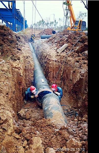 盈德氣體是荊門石化油品升級(jí)改造配套項(xiàng)目,是荊門市委、市政府重點(diǎn)招商引資項(xiàng)目,落戶于化工循環(huán)產(chǎn)業(yè)園。為服務(wù)好化工循環(huán)產(chǎn)業(yè)園,荊門市供水總公司19日接到鋪設(shè)盈德氣體專用DN600供水管道施工任務(wù)后,打破常規(guī),當(dāng)晚就安排人員、分解任務(wù);9月20日上午完成施工隊(duì)伍組織,工地測(cè)量、工程材料采購(gòu),下午立即進(jìn)場(chǎng)溝槽開挖。施工期間正逢207外環(huán)線與陽(yáng)光大道部分路段封閉改造,公司積極與道路改造方協(xié)調(diào),利用每天道路施工間歇,將20根鋼管100根球墨管順利運(yùn)轉(zhuǎn)至工地。為了能在預(yù)定時(shí)間內(nèi)完成任務(wù),工人每天早晨5點(diǎn)半進(jìn)入施工現(xiàn)場(chǎng),一直到晚上10點(diǎn)施工結(jié)束,中午不休息,早、中、晚三餐就在現(xiàn)場(chǎng)吃快餐。十天鋪通盈德氣體專用840米DN600供水管道。