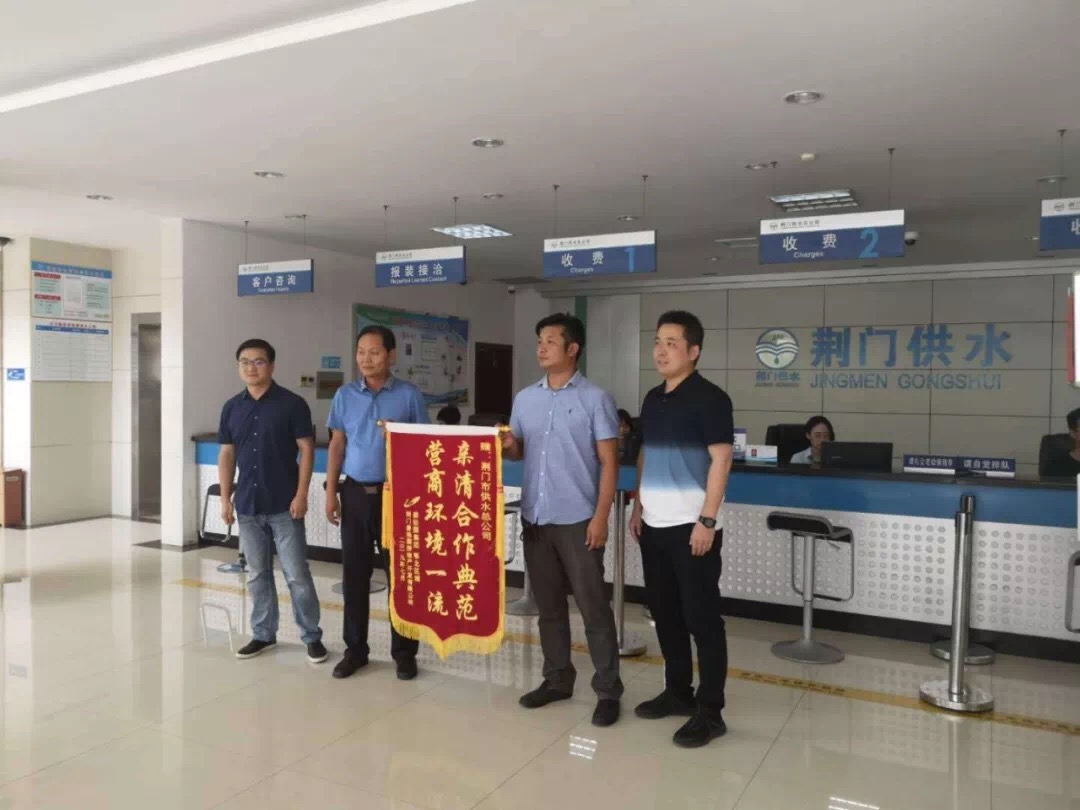 “每次來報裝,就像回到家里一樣!感謝市供水總公司十年以來一如既往的貼心服務!”近日,荊門碧桂園房地產(chǎn)開發(fā)有限公司項目副總經(jīng)理游明虎將一面寫有“親清合作典范,營商環(huán)境一流”的錦旗送到市供水總公司。