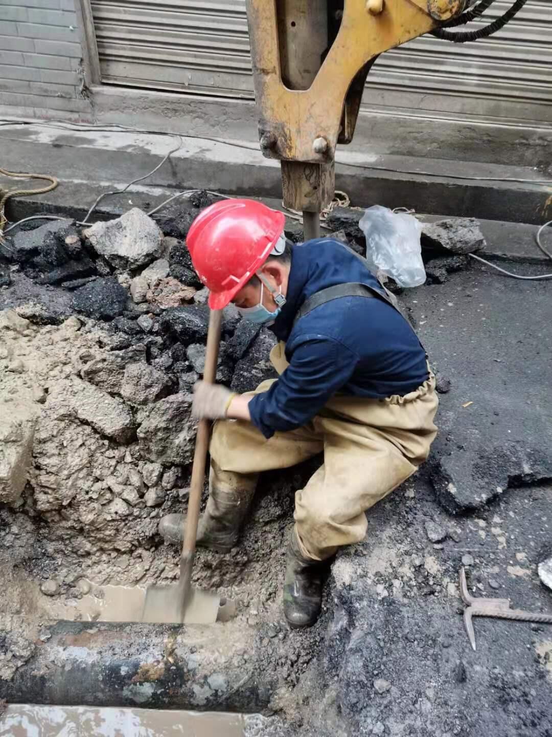 黃磊在建設(shè)街DN200管道搶修中開(kāi)鑿出搶修坑