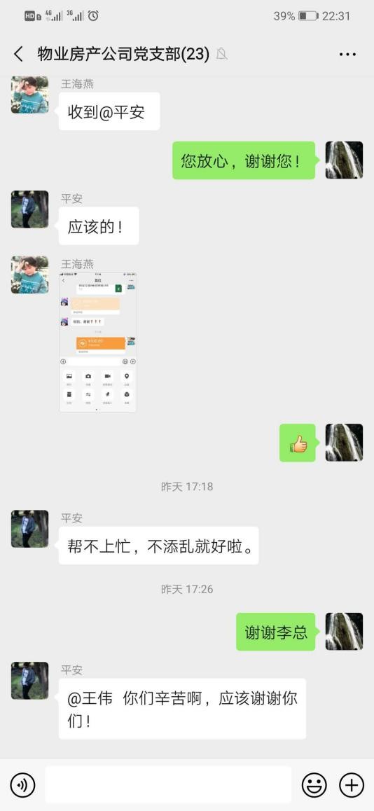在各支部黨小組微信工作群中開展的捐款中,“這是作為黨員應(yīng)該做的”“為抗擊新冠疫情加油”“我也想貢獻(xiàn)一份力量”“眾人拾柴火焰高”等留言猶如雨后春筍般,比比皆然……一筆筆溫暖人心的愛心捐款,一句句感人肺腑的真情流露,是廣大共產(chǎn)黨員心系群眾、無私奉獻(xiàn)的款款深情,更是他們堅(jiān)守初心、踐行使命的責(zé)任擔(dān)當(dāng)。此前,公司很多黨員干部職工通過參加社區(qū)志愿行動(dòng)、義務(wù)支援醫(yī)廢處置等多項(xiàng)行動(dòng),主動(dòng)投入到這場(chǎng)沒有硝煙的戰(zhàn)爭(zhēng)中,不少黨員同志提前通過荊門市紅十字會(huì)、荊門市慈善總會(huì)等多渠道進(jìn)行了捐款,多名捐款額較大的同志還再三叮囑要求不公開其姓名。