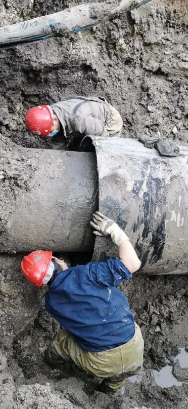 為盡快恢復(fù)供水,參與搶修人員直到下午2點才顧得上在現(xiàn)場匆忙吃一碗方便面午餐,下午4:40搶修工作順利完成,待封堵的水泥養(yǎng)護強度合格后于當(dāng)晚8點該管線完全恢復(fù)正常供水。