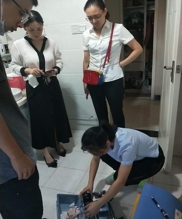 檢測(cè)人員在用戶家里進(jìn)行現(xiàn)場(chǎng)檢測(cè)和取樣
