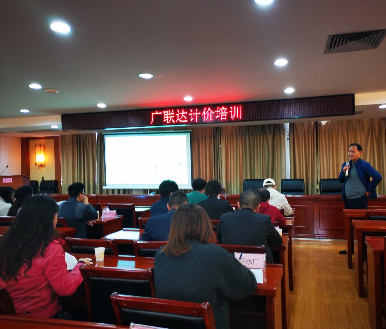 為加強員工造價專業(yè)知識,提升專業(yè)技能水平,10月23日,市供水總公司舉辦計價專業(yè)知識培訓。廣聯(lián)達公司講師應(yīng)邀講課。公司黨委委員、副總經(jīng)理羅家發(fā)參加培訓會并作動員講話,公司各相關(guān)科室及二級單位相關(guān)負責人共50余人參會。